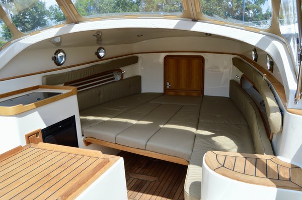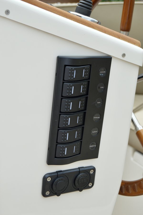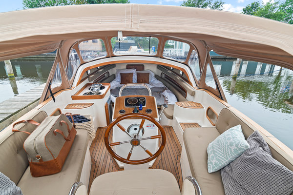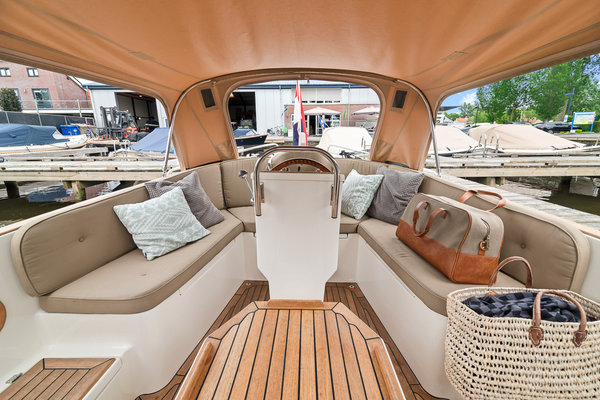 De buiskap biedt bescherming tegen de weerelementen en de zwemplateau met zwemtrap maakt het makkelijk om een verfrissende duik te nemen. Na een dag varen kun je lekker ontspannen onder de led buigveer leeslampjes terwijl je geniet van een gezellige avond aan boord.