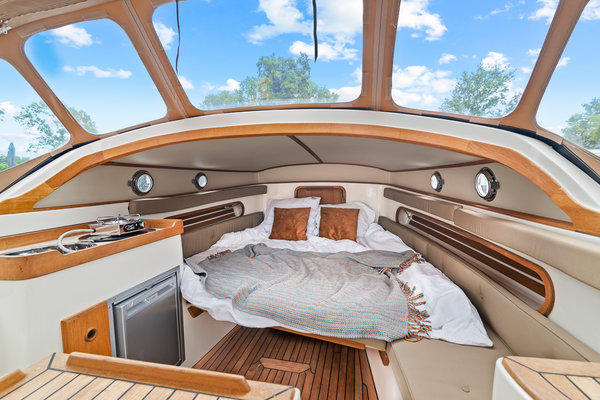 Met de vaste cabine ervaar je niet alleen ultiem slaapcomfort en privacy, maar ben je ook beschermd tegen elk weertype. Dit maakt de sloep de perfecte keuze voor kamperen op het water – slapen onder de sterren, wakker worden met het geluid van rimpelend water en elke ochtend het avontuur weer voortzetten!