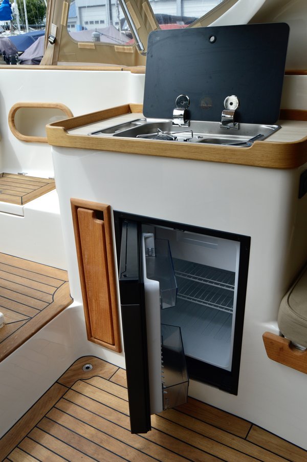 De Langweerder 7.50 Cabin is helemaal ingericht voor het ultieme kampeercomfort: een 1 pits kooktoestel, koelkast (50 liter met vriesvak) en een spoelbak maken het koken en koel houden van je etenswaren een fluitje van een cent. Met een chemisch toilet (standaard voor meerdaagse tochten, optioneel bij dagverhuur) heb je alles wat je nodig hebt voor een zorgeloze overnachting aan boord. En vergeet de walstroomaansluiting (230V) niet, die zorgt dat je zonder zorgen van het stroomnet gebruik kunt maken tijdens lange tochten.