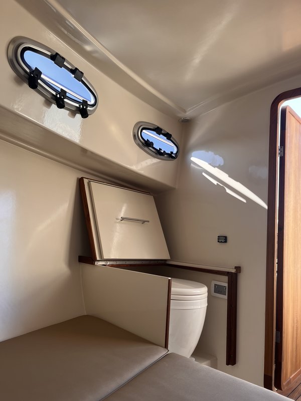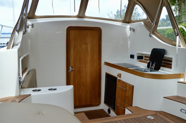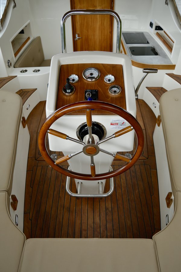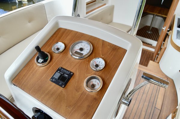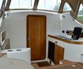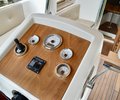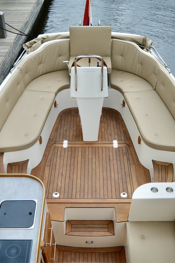 De zwemtrap maakt het eenvoudig om in en uit het water te stappen voor een verfrissende duik, en de kuipverlichting zorgt voor de perfecte sfeer voor een gezellige avond aan boord.