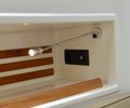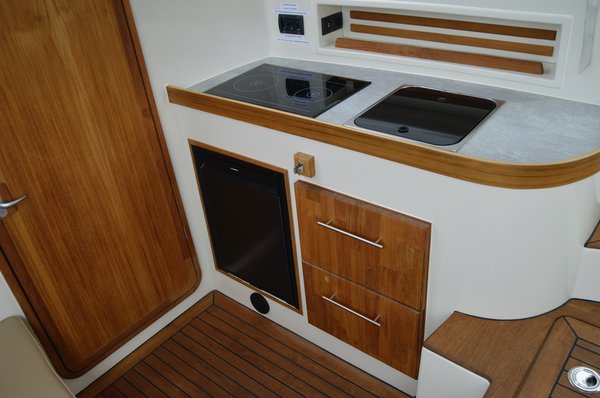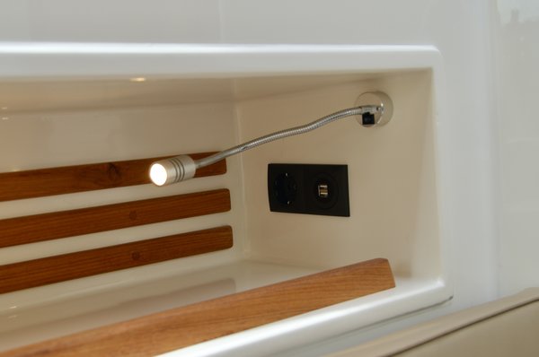 Aan boord is de sloep volledig uitgerust om jouw verblijf zo comfortabel mogelijk te maken. Het 2-pits kooktoestel en de spoelbak maken het bereiden van een heerlijke lunch of warme maaltijd een fluitje van een cent. Met 4 USB-12 volt aansluitingen en 3 230-volt (met walstroom) aansluitingen kun je al je elektronische apparaten opladen, zodat je altijd contact kunt houden of gewoon van muziek kunt genieten tijdens je tocht.