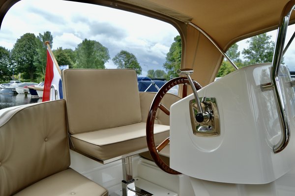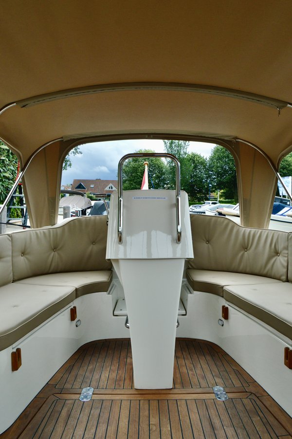 Voor extra comfort is de sloep voorzien van verwarming, zodat je altijd in een aangename temperatuur kan overnachten. De weekender buiskap biedt bescherming tegen zon of regen en is flexibel met afritsbare zij- en achterramen – ideaal voor een zomerse vaartocht.