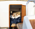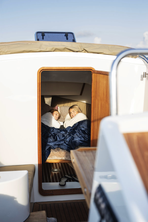 Kamperen op het water wordt een luxe ervaring met de Langweerder 800 Cruiser! De sloep biedt slaapplaatsen voor 4 personen (advies: 2 volwassenen/ 2 kinderen) – twee in de gezellige kajuit en twee in de kuip. Stel je voor: slapen onder de sterren, wakker worden met het geluid van rimpelend water en de volgende ochtend het avontuur weer voortzetten. De kajuit biedt stahoogte en opbergruimte, zodat je comfortabel kunt overnachten en al je spullen netjes kunt opbergen.